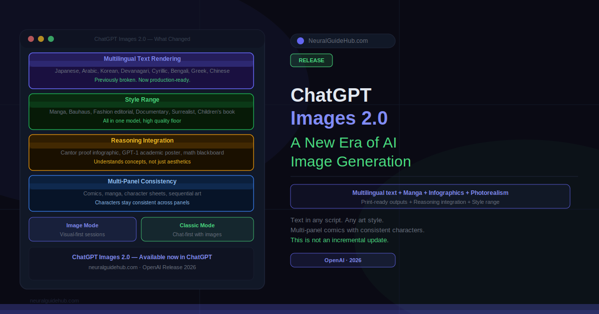 There’s a specific moment where a tool moves from “impressive demo” to “I actually use this for client work.” For AI image generation, that moment has been slow to arrive. The previous generation produced things that looked good until you looked closely. Garbled text. Hands that defied anatomy. Characters that drifted across panels. ChatGPT Images 2.0 is the version that closes most of those gaps, and the range of what it can now produce in a single session is genuinely different from what came before.