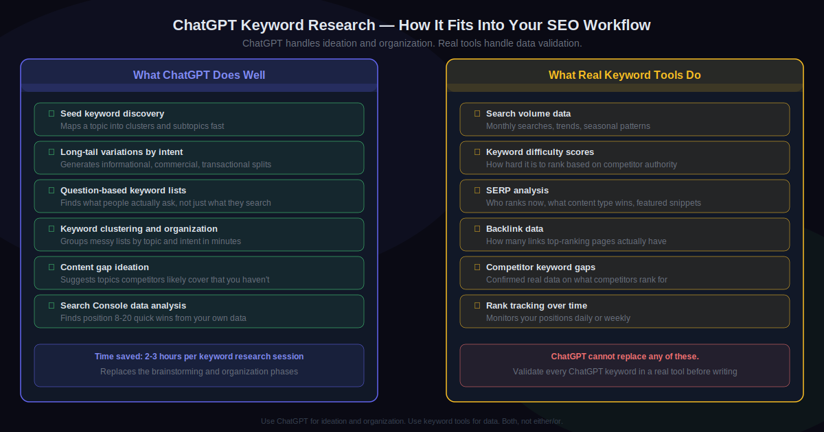 - What ChatGPT keyword research is actually good at and what it genuinely cannot do